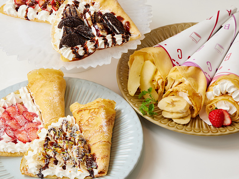 〈 クレープ 〉4種 シュガーバタークレープ / マシュマロオレオクッキークリームクレープ / 丸ごとチョコバナナクリームクレープ / 丸ごとキャラメルバナナクリームクレープ |