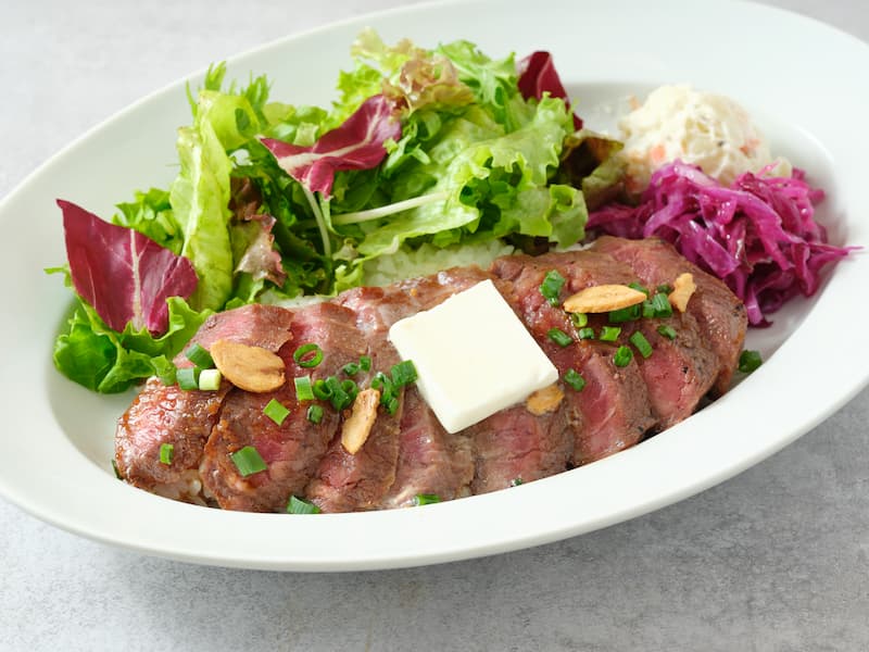 | 牛ハラミのガーリックバターオーバーライス |
